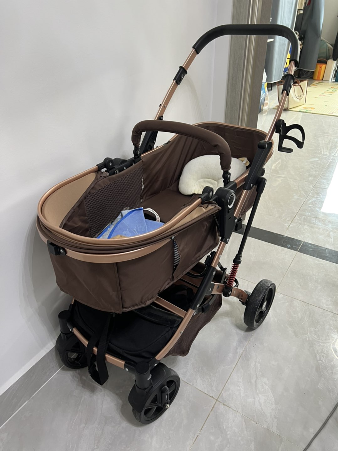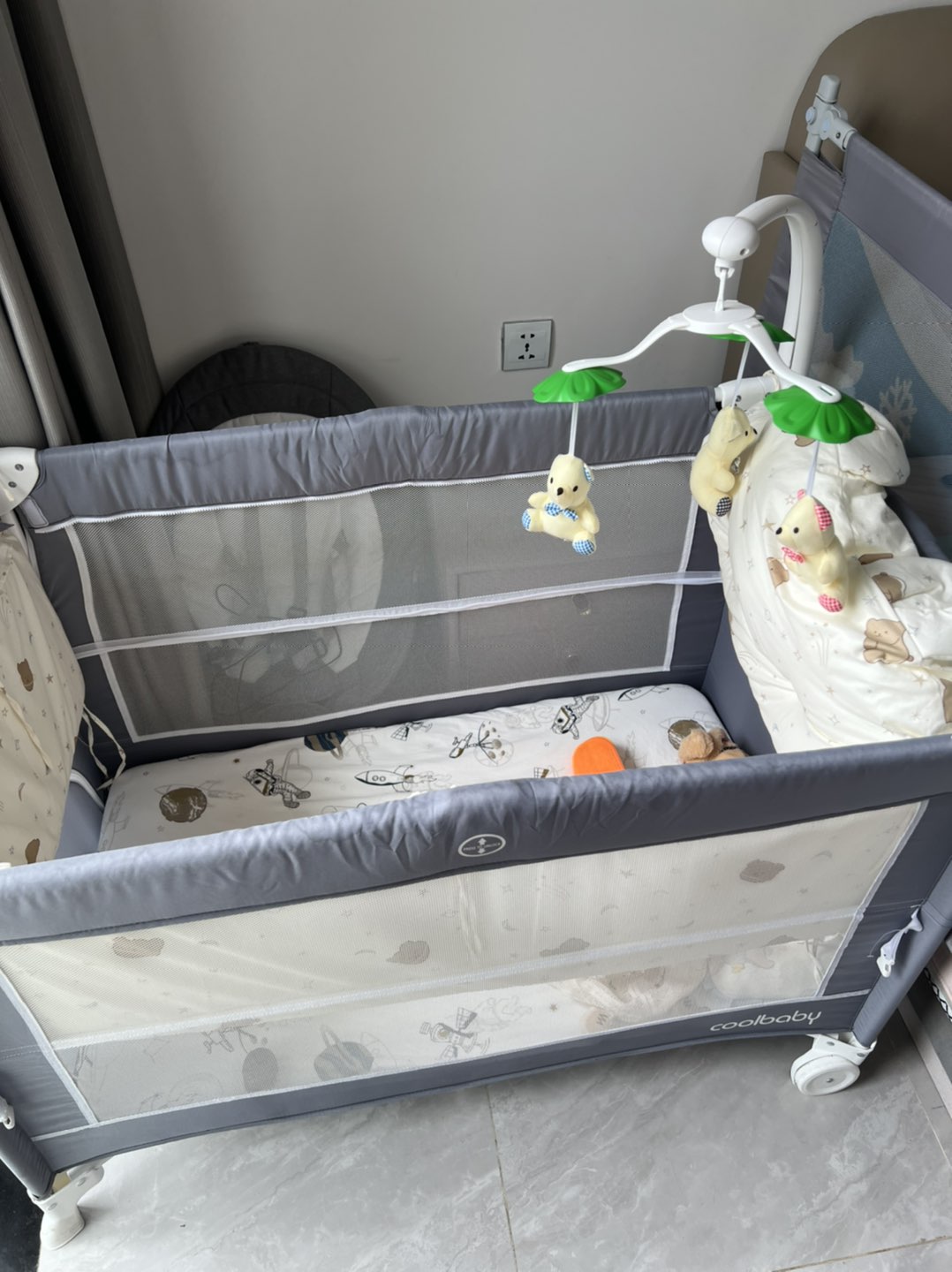 自己宝宝用过几个月的婴儿车可折叠,还有一个可折叠坐着的小车,婴儿床,尿布台可推拉的,还有婴儿洗澡盆,还有小白熊自动温奶神器。
